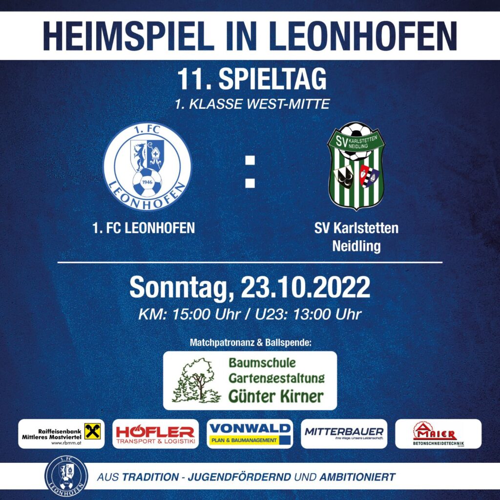 Am kommenden Sonntag stehen gleich drei Heimspiele für den FCL am Programm, denn neben unserer Kampfmannschaft und unserer U23 kämpfen auch unsere Frauen der FSG Voralpen um wichtige Meisterschaftspunkte. Dieser Spieltag in Leonhofen wird gesponsert von der Baumschule Günter Kirner aus Hofstetten und startet um 11 Uhr mit dem Duell der FSG Voralpen gegen Herzogenburg. […]